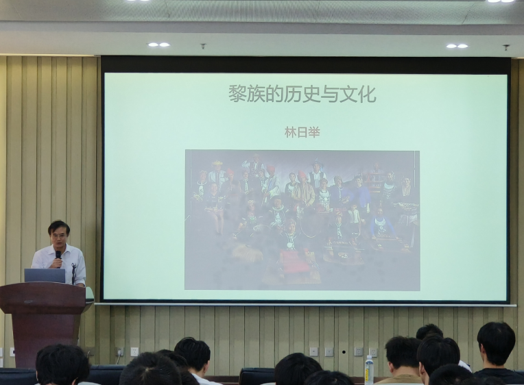 讲座中,林日举教授凭借深厚的学术积淀与生动鲜活的语言,系统梳理了黎族悠久的历史发展脉络,深入阐释了黎族在海南的繁衍历程、独特的文化习俗、社会结构及传统信仰。他结合丰富的历史细节与鲜活案例,生动展现了黎族文化作为中华文化不可分割的重要组成部分的瑰丽魅力,着重强调了各民族在漫长历史长河中相互交融、共生共荣、共同发展的紧密联系。